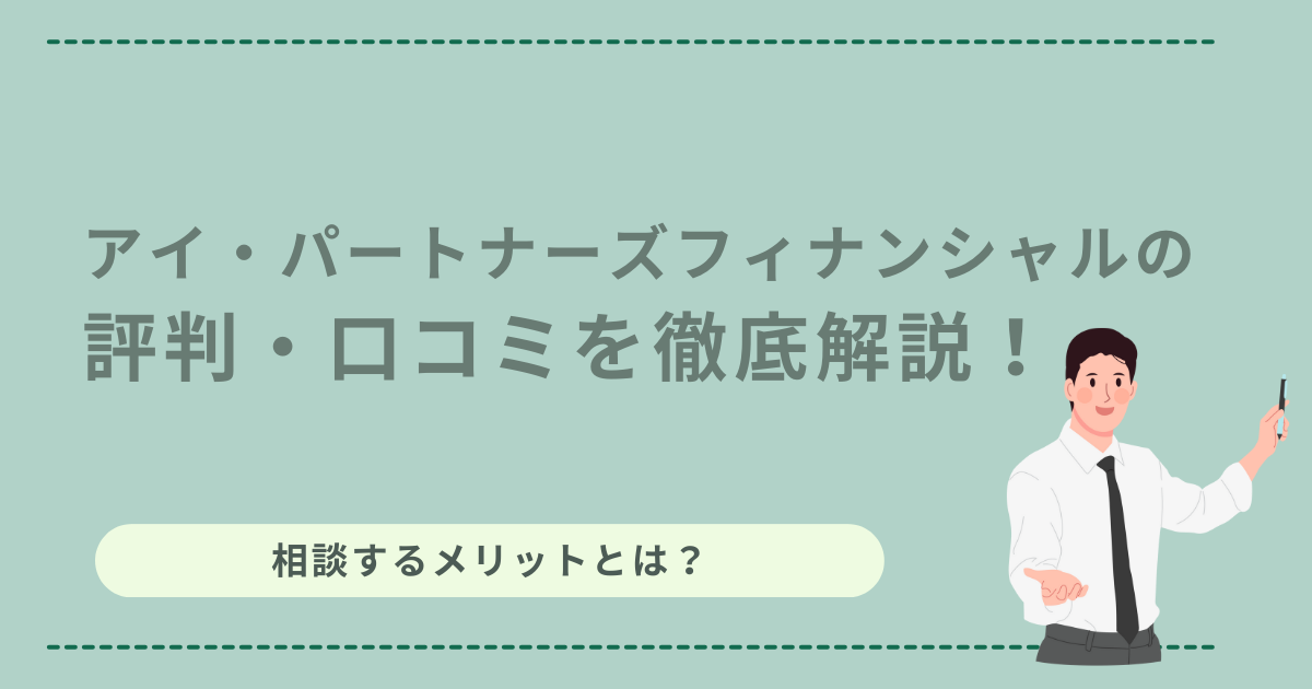 本記事では、株式会社アイ・パートナーズフィナンシャルの概要や評判・口コミ、おすすめできる理由を解説する。